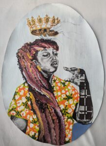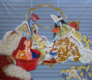 Diane Keumo apporte une dimension philosophique et politique essentielle. Pour elle, « Réparer les regards », c’est avant tout humaniser. Elle s’attaque frontalement à la représentation de la femme, refusant l’image réductrice de la « femme rurale au foyer » pour célébrer la puissance et la complexité des figures féminines contemporaines.